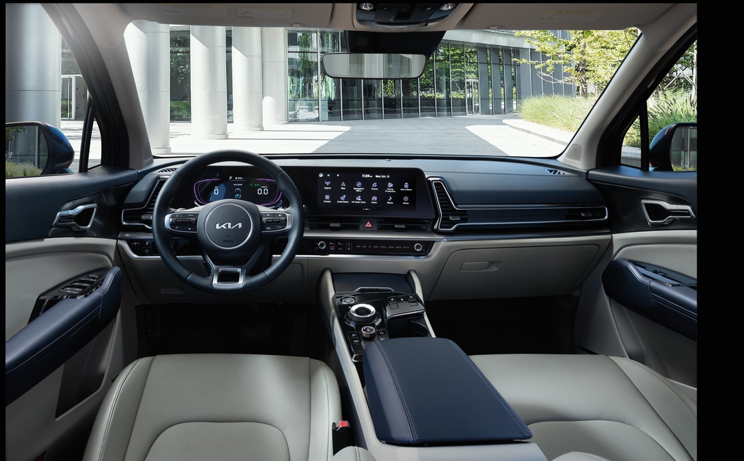 The main cabin of the Kia Sportage hybrid offers a host of comfort amenities and modern tech tools. Standard equipment includes Apple CarPlay, Android Auto, and an eight-inch touchscreen. Dual-zone automatic climate control helps you stay regulated year-round in Anchorage. Moving onto the EX trim, take advantage of upgraded features like a 12.3-inch touchscreen, a wireless smartphone charging pad, synthetic leather upholstery, and heated front seats. The top-of-the-line SX Prestige trim includes luxury amenities like ventilated front seats, a heated steering wheel, a panoramic sunroof, and an eight-speaker Harman Kardon premium audio system.