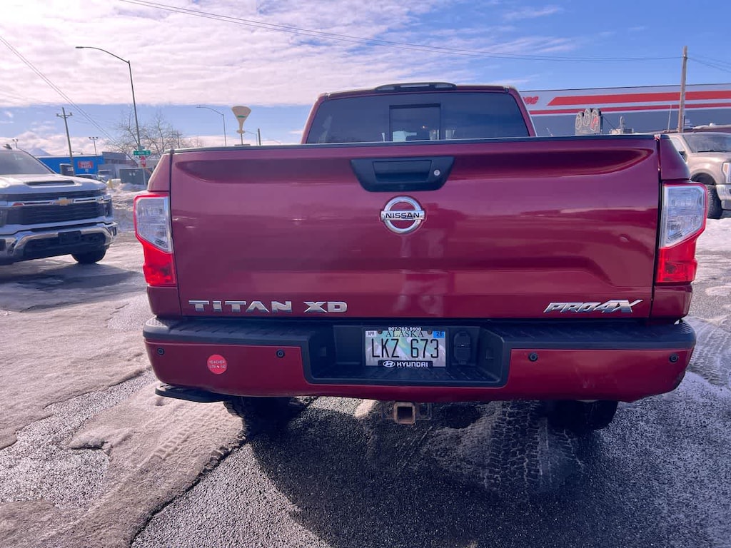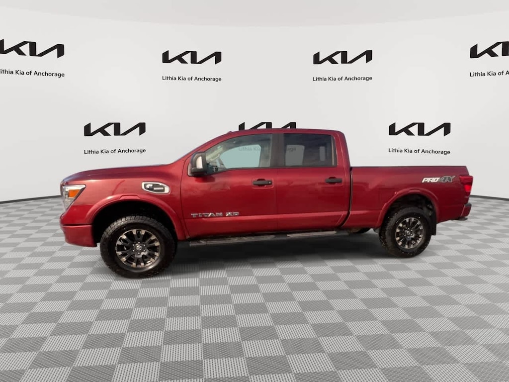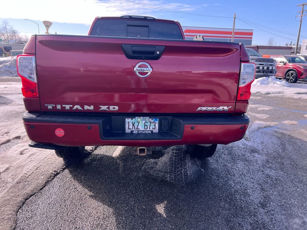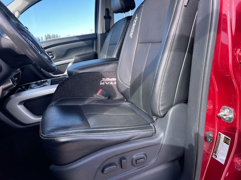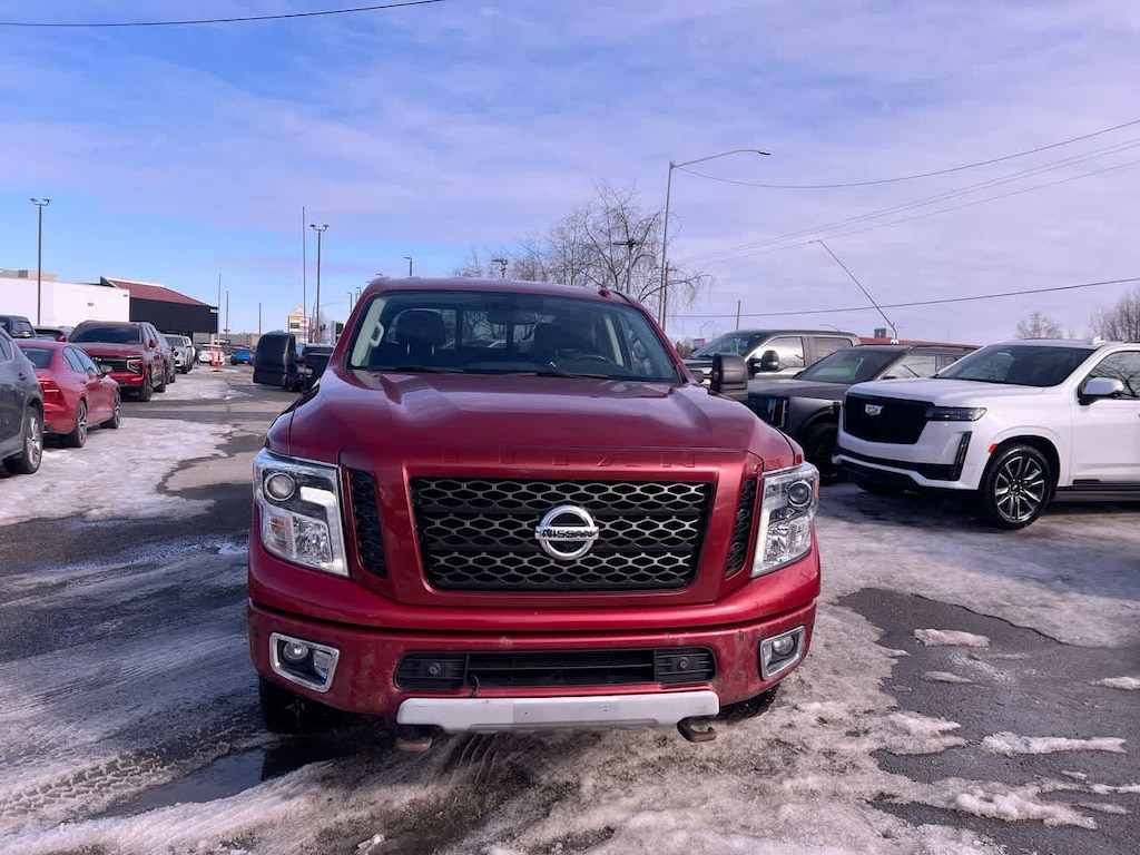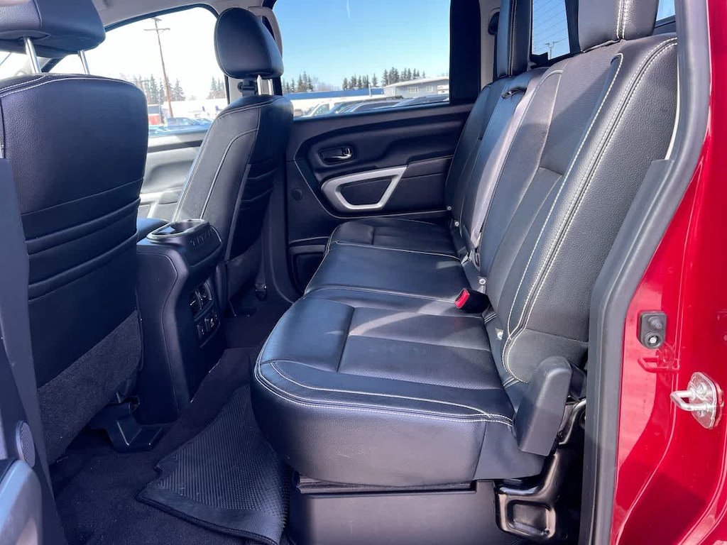 PRO-4X CONVENIENCE PACKAGE NissanConnect Services w/navigation, mobile apps and remote engine start, Compass on NAVI display, Heated Rear Seats, Heated Power Tilt/Telescopic Steering Wheel, memory, Auto Dimming Outside Mirrors, memory, Universal Garage Door Opener, Engine Remote Start Function, Included on key fob, Heated Front Captains Seats, drivers seat memory w/auto entry/exit feature and 4-way power passenger seat, Auto-Dimming Rearview Mirror, compass, PRO-4X LUXURY PACKAGE reverse auto tilt, Auto Dimming Outside Mirrors, memory, Around View Monitor, moving object detection and auto activation in 4LO mode, Ventilated Driver & Front Passenger Seats, PRO-4X UTILITY & AUDIO PACKAGE 110V Outlet In Bed, Utilitrack System w/4 Tie-Down Cleats, Power Slide Rear Window w/Defogger, Tailgate Area Illumination, Front & Rear Parking Sensors, LED Under Rail Bed Lighting, Rear Utility Bed Step, Rockford Fosgate Premium Audio w/12 Speakers, amplifier, underseat subwoofer, center channel speaker and front/rear tweeters, Electronic Locking Tailgate. Nissan PRO-4X with Cayenne Red exterior and Black interior features a 8 Cylinder Engine with 310 HP at 3200 RPM*.